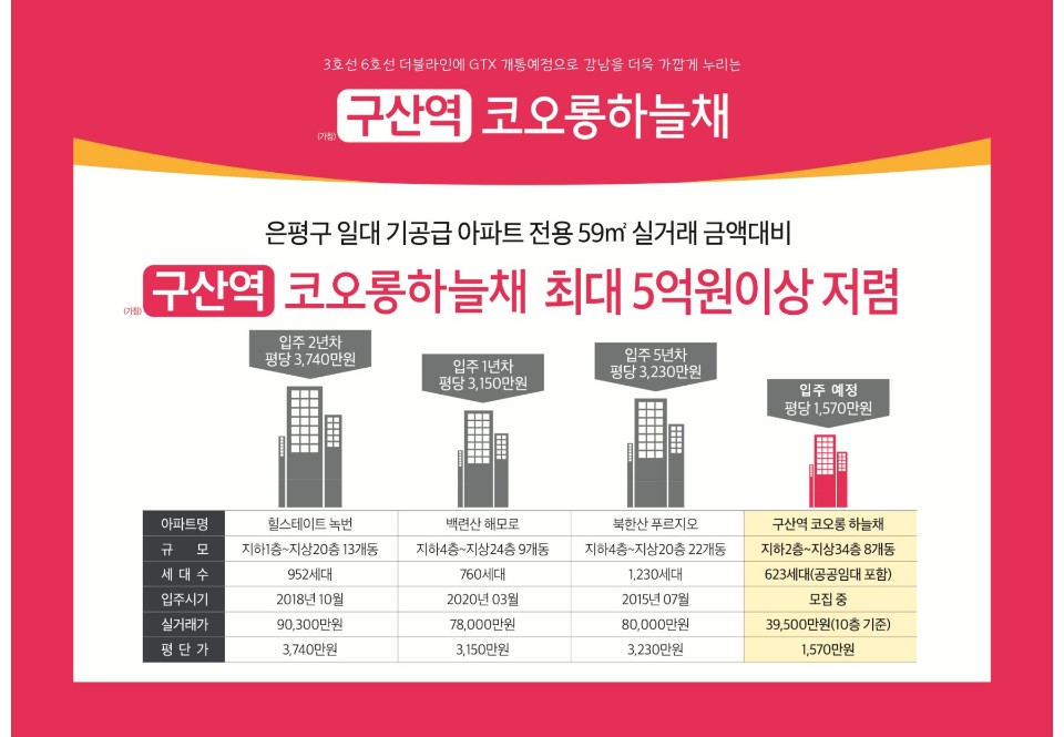 은평구 역촌동에 들어서는 가칭 ‘구산역 코오롱 하늘채’ 아파트가 2차 조합원 모집 마감이 임박했습니다. 단지는 지난해 마감된 1차 조합원 모집 당시 주변 입지 조건과 개발환경 등으로 주목받은 곳입니다.