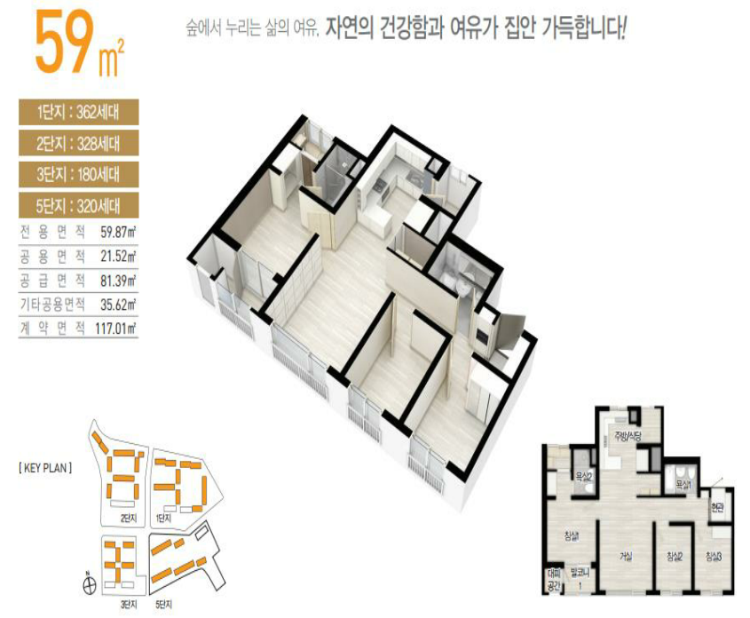중소형 평형대, 남향 위주로 구성합니다.