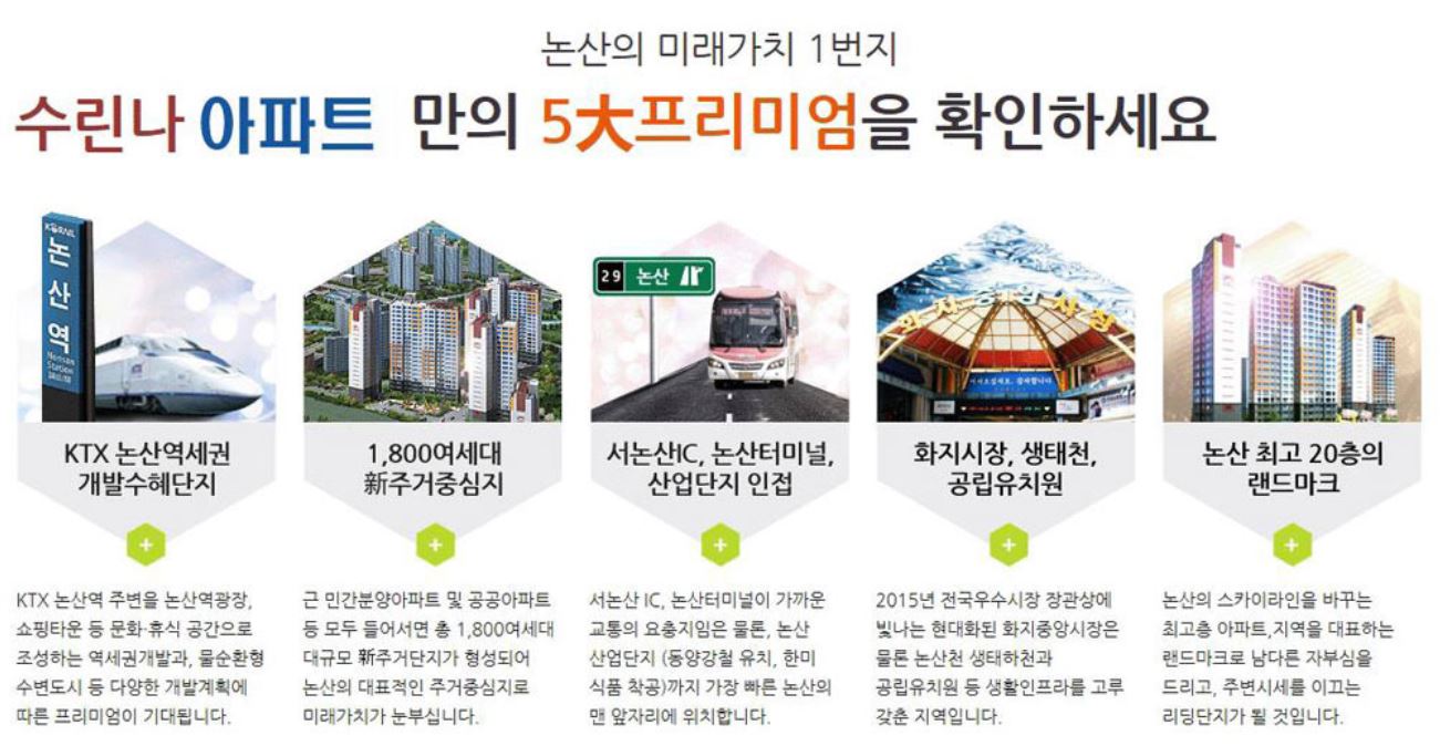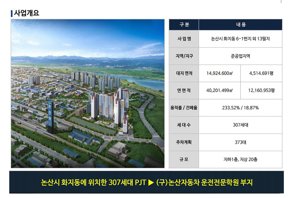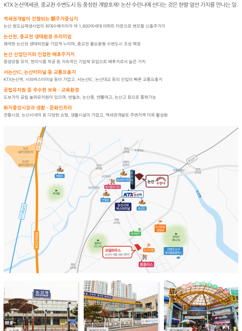- 논산시에서 균형발전과 구도심활성화 차원에서 논산역 인근에 새로운 아파트단지를 형성하고자 하는 정책을 펴기에 좋아 새로운 아파트타운의 입지를 기대됨.