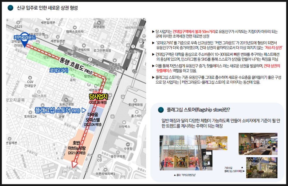 - 전국 3대상권인 건대입구역 롯데 백화점 맞은편 먹자 및 검증된 로데오 상권 초입