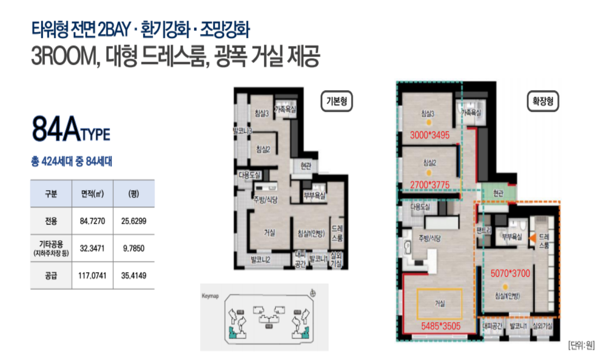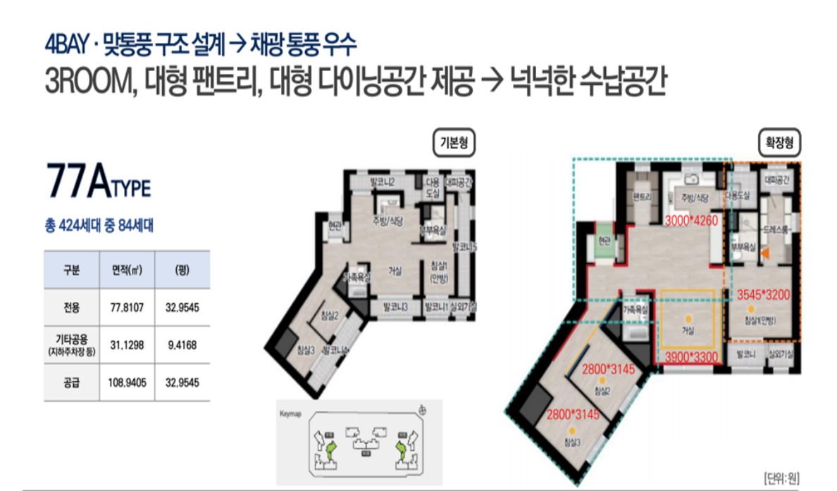 전 세대 조망권을 가진 남향위주 배치와 특화설계