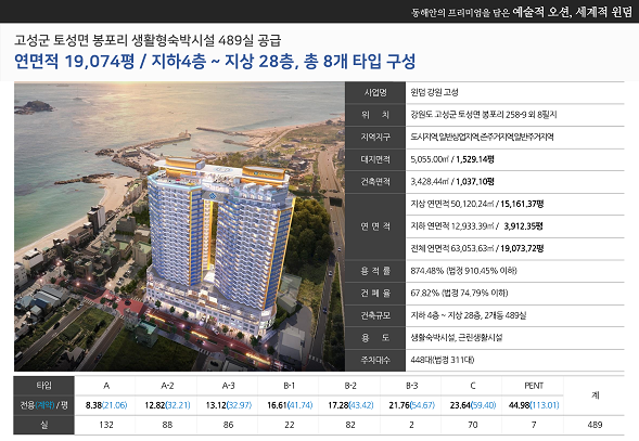 - 80개국 20개 브랜드,약9천2백여 개 규모의 세계적인 호텔 체인 윈덤그룹의 고성,속초 최초 5성급 호텔 공급 및 국내 최초 윈덤호텔 위탁 운영