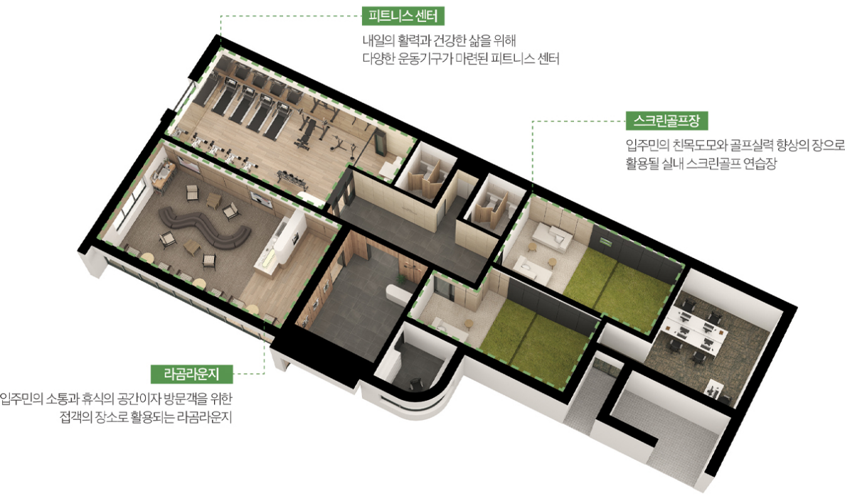 반경 1km내 갤러리아백화점, 이마트트레이더스, CGV 등의 풍부한 생활 인프라 형성