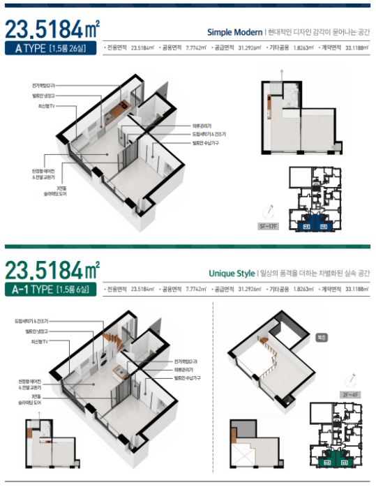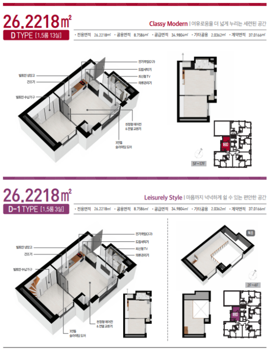 ✔ 직장인 및 1~2인 세대를 위한 특화설계 1.5룸 풀옵션 총 137실
