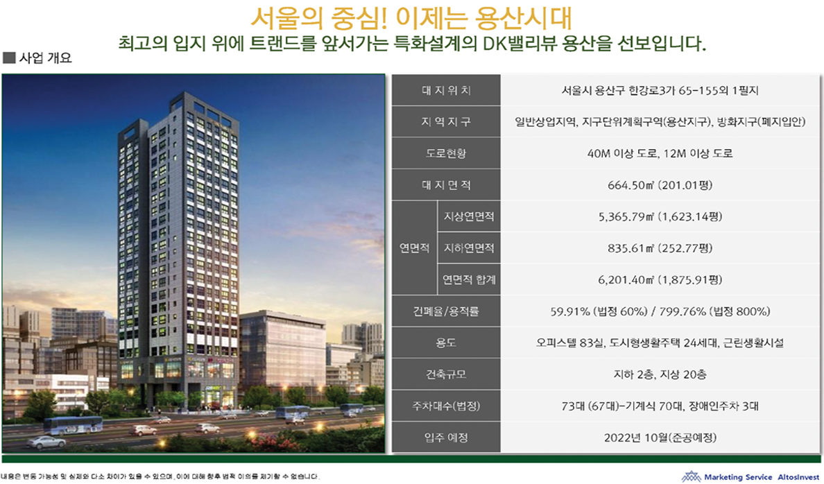 "DK밸리뷰용산"오피스텔,상가 선착순분양안내~