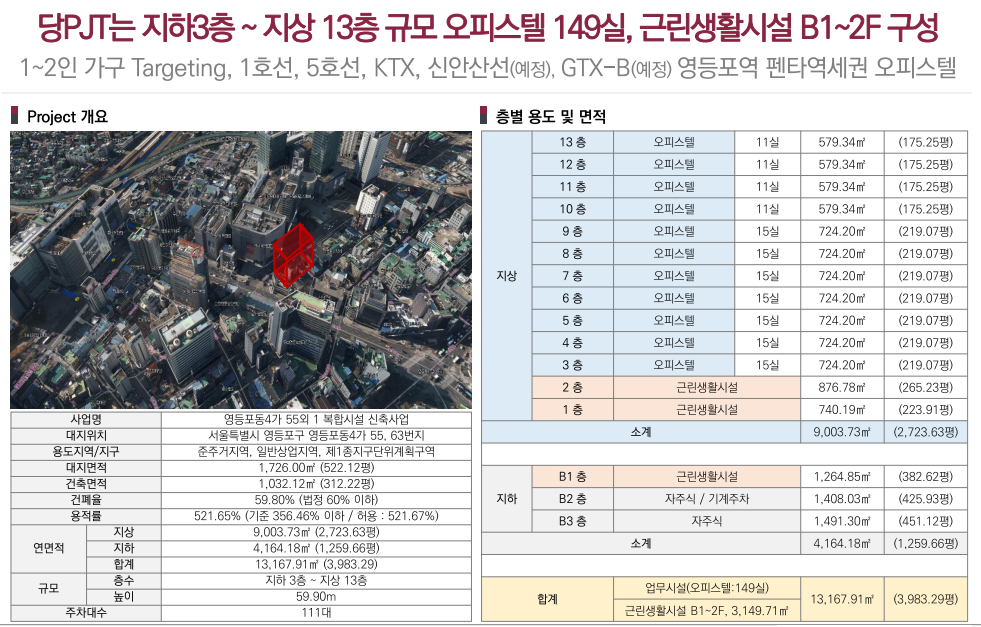 지하3층~ 지상13층 (상가 : B1 ~2F, 오피스텔 : 3F~13F)