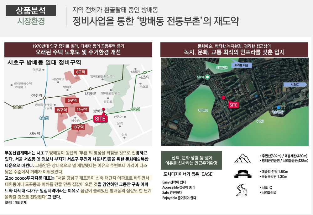 지역전체가 환골탈태 중인 방배동 정비사업을 통한"방배동 전통부촌"의 재도약