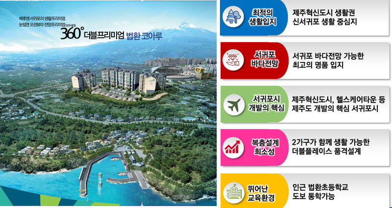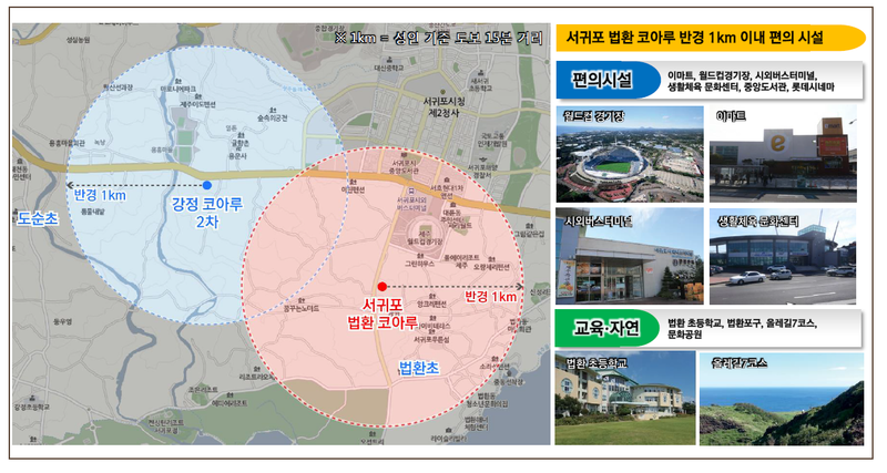 도보권으로 이마트, 법환초교, 롯데시네마, 버스터미널, 체육센터 등 인프라가 풍족하게 형성되어 있고, 서귀포 중심상권과 접근성도 뛰어나,