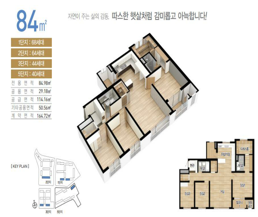 중소형 평형대, 남향 위주로 구성합니다.