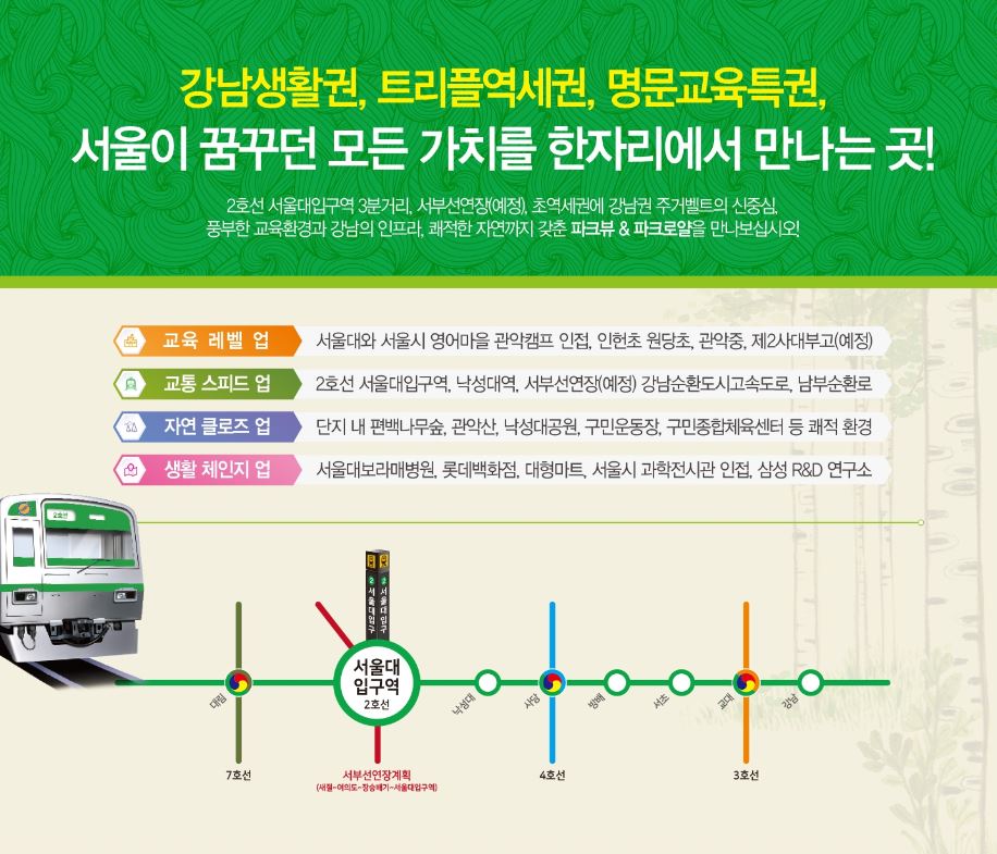<교통 프리미엄> 2호선 서울대입구역 3분, 2호선 낙성대역 4분, 서부선연장 확정으로 트리플 역세권