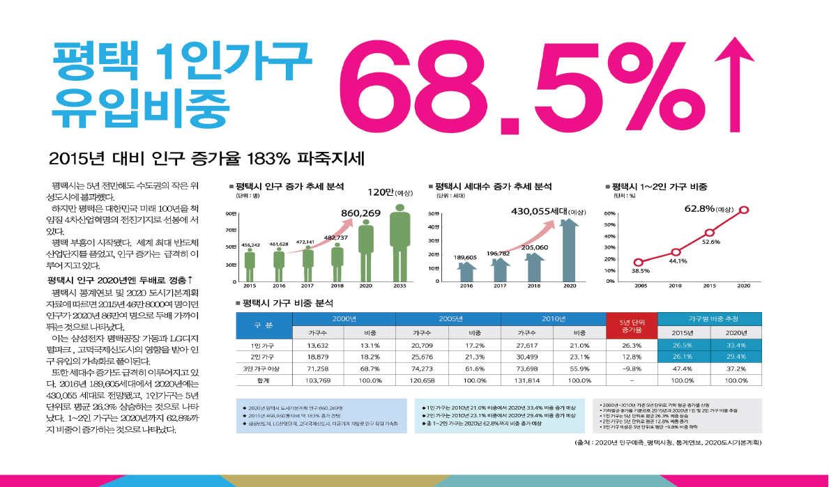 평택 1인 가구 증가율68%/ 100만명 프리미엄 수요층 / 공실 무 (자족 도시)
