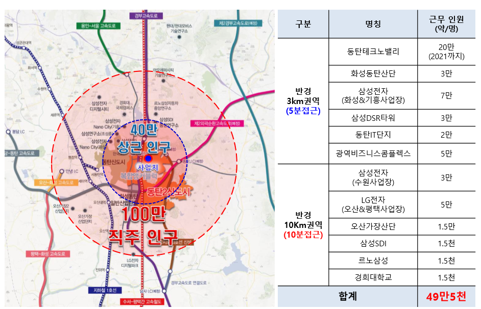 동탄,오산 등 대규모 산업단지의 풍부한 배후수요와