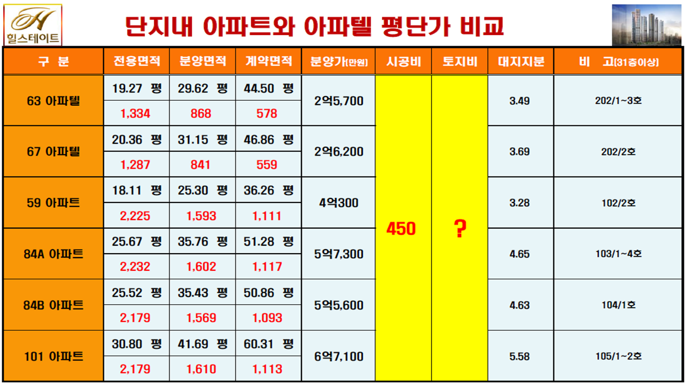 특히 일반 오피스텔처럼 기계식 타워주차가 아닌 100% 넘게 확보된 편리한 자주식 주차장을 이용 할 수 있는 저희 아파텔은 힐스테이트 브랜드에 아파트와 똑같은 자재와 인테리어. 편의시설. 보안. 조경. 놀이시설을 이용하기에 실 거주나 투자자에게 갈수록 인기가 많아질 수밖에 없습니다.