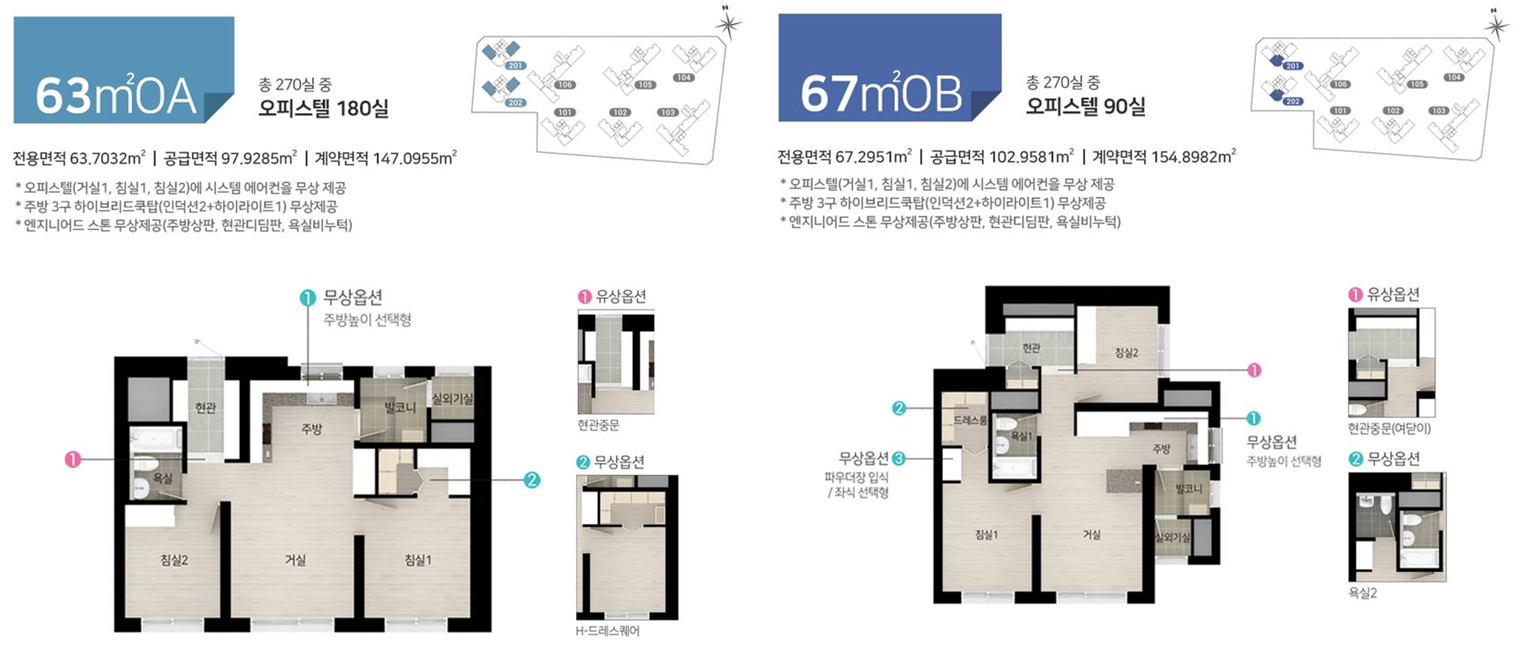예금대비 5배 이상의 높은 수익률과 1억 정도 소액 투자도 가능하고 실 거주나 임대수익 투자에도 적합한 가격과 평형대 이면서도 국내 1등 브랜드답게 풀 옵션에 뛰어난 평면과 쓰임새까지 제대로 갖춰진 특화된 설계로 우리 아파텔은 망설일 이유가 없습니다.