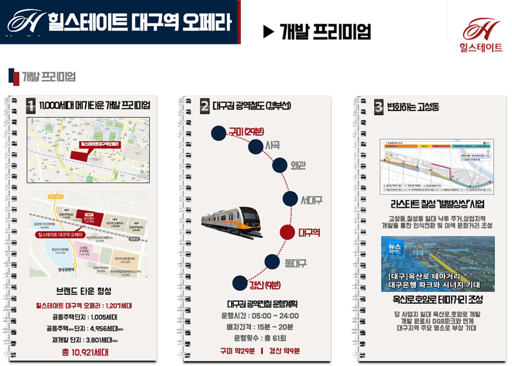 여유 있는 삶에는 투자가 필수라면 수 천세대 들어서는 대단지는 기본 각종 문화, 스포츠, 역세권, 쇼핑시설, 금융권, 의료 등 완벽한 인프라를 가진 도심 개발지 중심지 투자를 선택 해야 하며 브랜드 가치가 가장 뛰어난 힐스테이트, 북구 최고 초고층 1,200세대가 넘는 대단지 단지 내 급증하는 1~2세대에 딱 맞는 평형 대라면 망설일 이유가 없습니다. 더불어 아파트 이상의 평면과 인테리어를 자랑하면서 각종 부동산 규제를 말끔히 벗어난 아파텔! 더 이상 이만한 투자처도 없습니다.