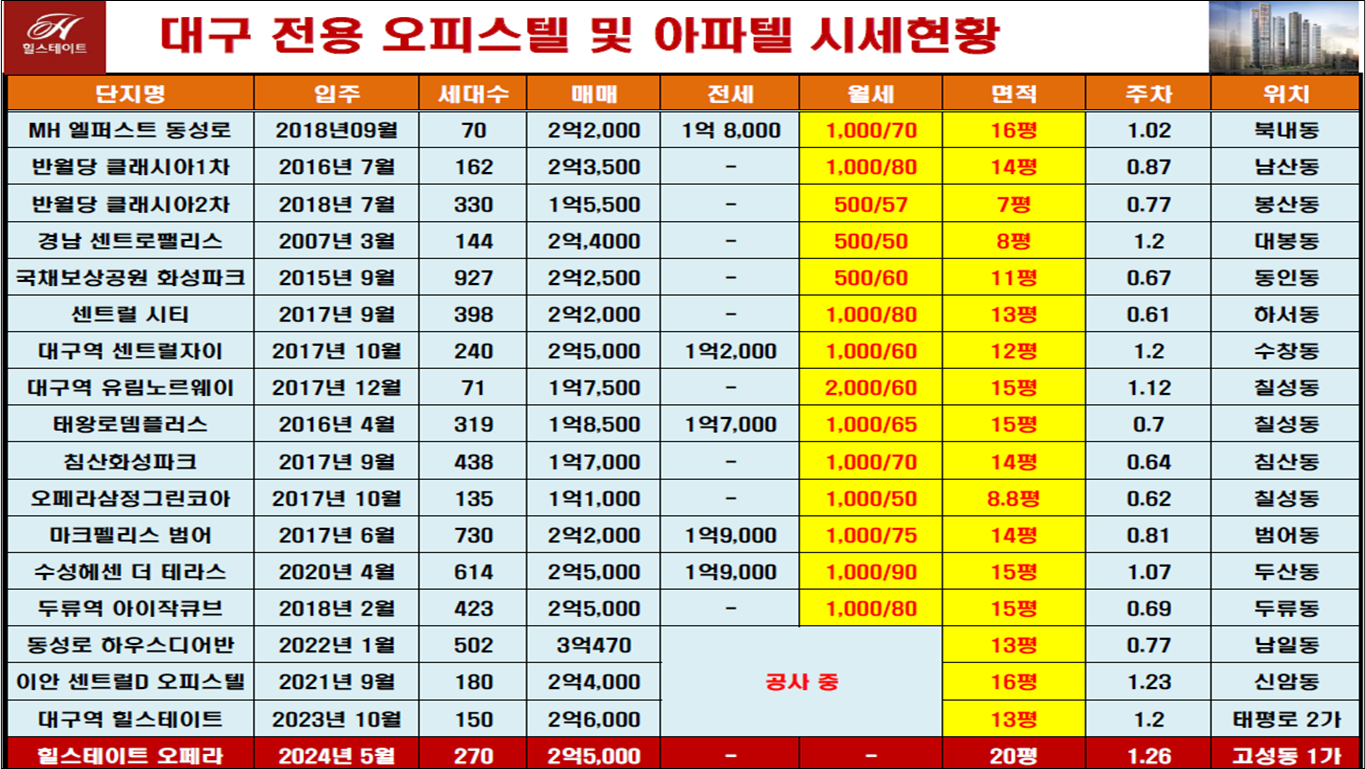 신혼부부나 자녀들 출가시키고 남은 노부부 두 분이 사시 기에도 딱 맞는 평형대는 실 거주와 투자자 입장에도 안정적인 수익과 함께 훌륭한 투자처이며 수도권을 뒤따라가는 대구도 앞으론 서울처럼 아파텔은 더욱 인기 많고 확실한 투자 대상입니다.