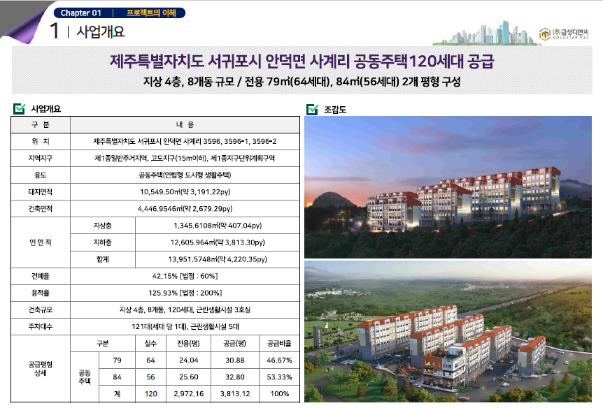 총 120세대 지상4개층 8개동으로 세대당 1대의 주차공간이 마련되어 있습니다. 주변환경은 생활편의 및 교육과 교통 등의 인프라가 잘 갖추어져 있고 도심으로의 이동이 쉬운 주거 선호도가 높은 지역입니다.