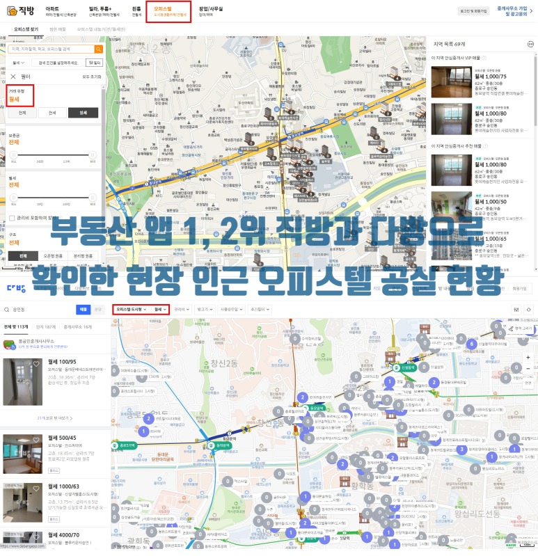 종로구/중구 인근의 원룸과 구축 오피스텔도 공실률이 0에 수렴