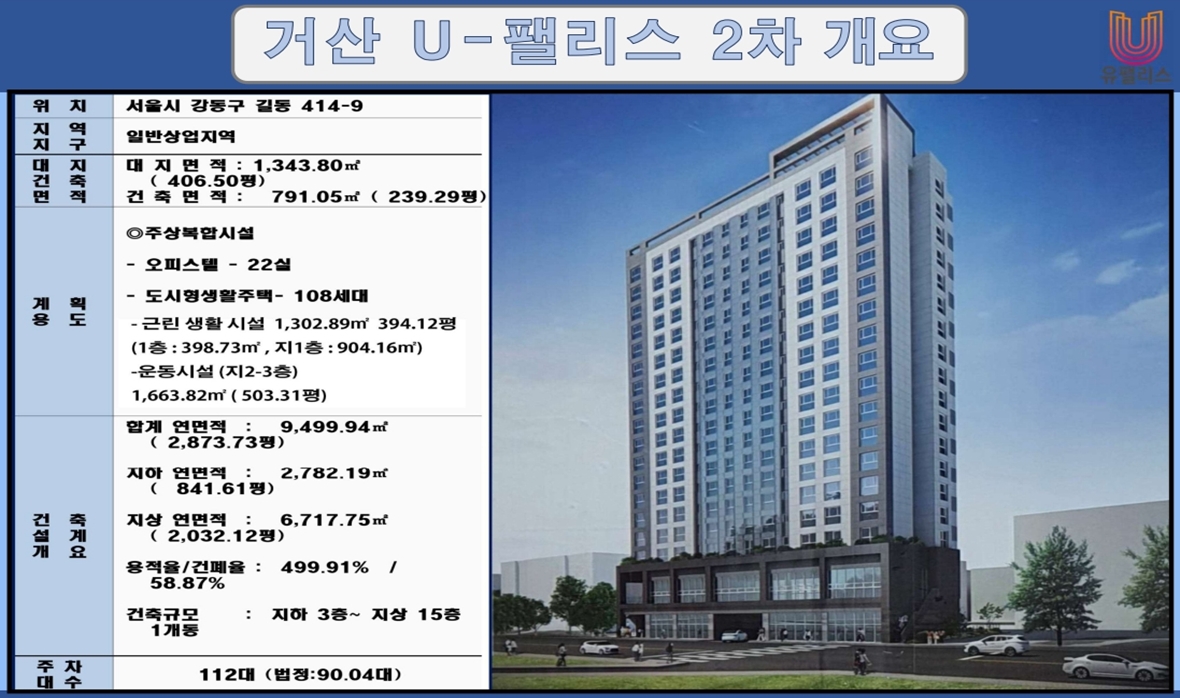 ◇ 건축규모 : 지하3층~지상 15층 (2-3층 오피스텔, 4-15층 도시형생활주택)