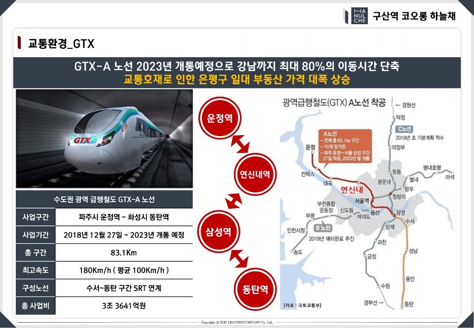 구산역에서 도보 2분 거리의 초역세권 위치를 선점한 이 아파트는 2023년 개통 예정인 GTX-A 연신내역, 신분당선 연장 예정 역인 독바위 역과 가깝습니다.