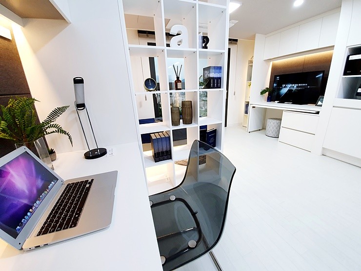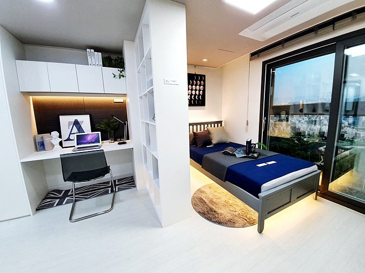 각 타입별 기본 옵션으로 스터디 책상과 수납형 침대(단층형), 소형 붙박이장, 벽걸이형 건조대를 설치했다.