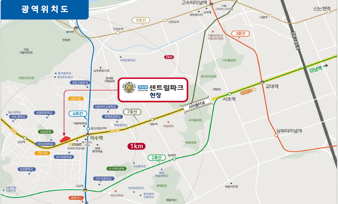 이수역 센트럴파크는 이수역 10번출구에서 110m(1분) 거리에