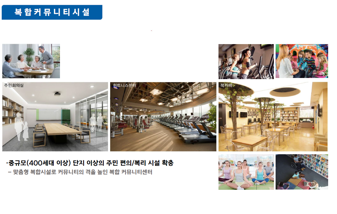 주민 편의 시설은 중형단지 이상의 복지시설과 편의시설을 확충하고 맞춤형