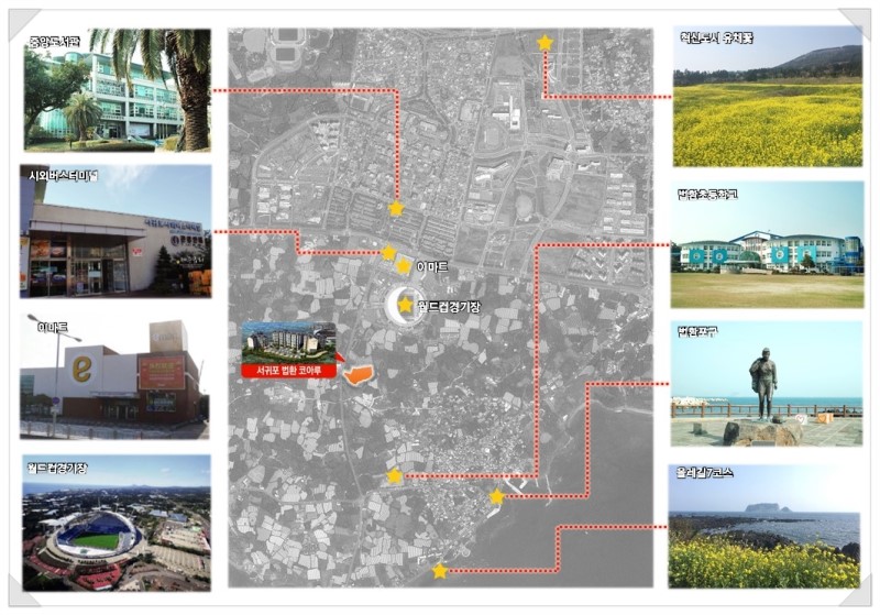 도보권으로 이마트, 법환초교, 롯데시네마, 버스터미널, 체육센터 등 인프라가 풍족하게 형성되어 있고, 서귀포 중심상권과 접근성도 뛰어나,