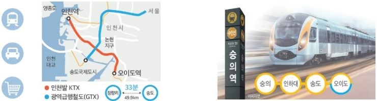 송도~청량리를 잇는 광역급행철도 GTX(예정)와 인천발 KTX(2021년 개통 예정)의 미래가치를 누립니다