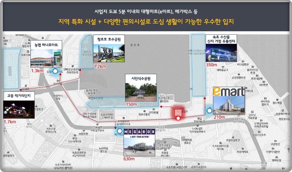 ★★★ 도보 가능거리 이마트, 메가박스, 속초로데오 거리, 속초관광수산시장 등 생활 인프라 우수