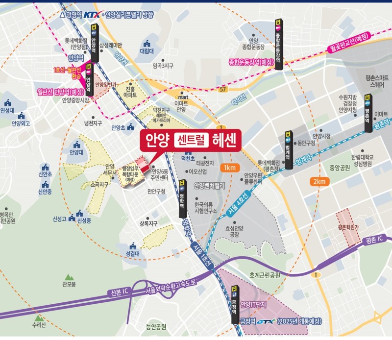 안양 센트럴 헤센의 가장 큰 장점은 주변 개발호재가 풍부하다는 점이다. 우선 옛 국립농산물품질관리원 부지에 건설되는 안양 센트럴 헤센을 포함하여 3개 필지에 1900여 가구에 달하는 대규모 복합주거단지가 형성될 예정이며, 단지 건너편 옛 농림축산검역본부 부지는 행정업무복합타운 건설이 추진되고 있으며 연내 구체적인 개발 계획을 발표할 예정이다.